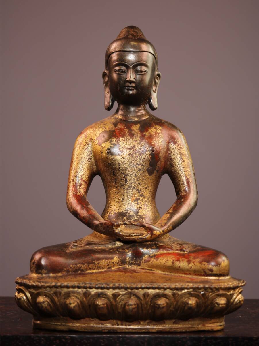 > 蔵友旧蔵出 銅製 泥金 撒朱砂 淨身如來像 供奉仏像擺件 希少珍品 貴重品 置物 古賞物 密宗密教 供養品 仏教美術品