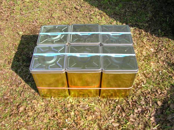 - 中古 18リットル缶 角蓋 6個の値段 食用油のリサイクル品 洗浄済 油汚れなし サイズ240*240*H350ミリ 一斗缶