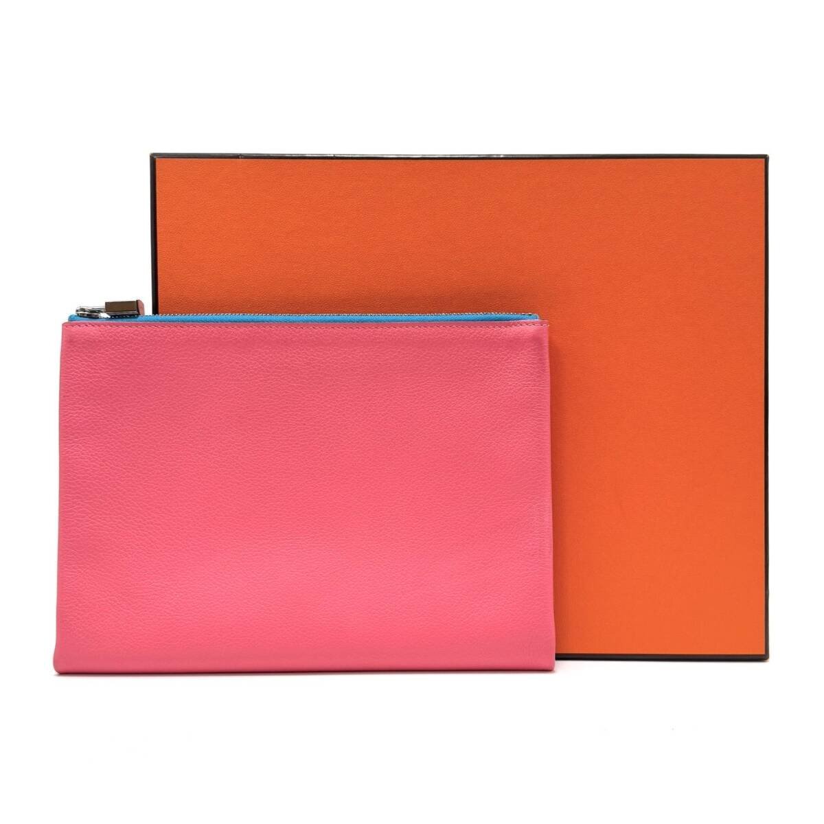 > エルメス アトゥーGM ポーチ クラッチバッグ セカンドバッグ コスメポーチ 小物入れ ピンク ブルー レザー エバーカラー 本革 HERMES