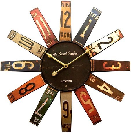 - 掛け時計 壁掛時計 円形 丸型 おしゃれ インダストリアル レトロ カジュアル アメリカン 西海岸 ナンバープレート デザイン モチーフ