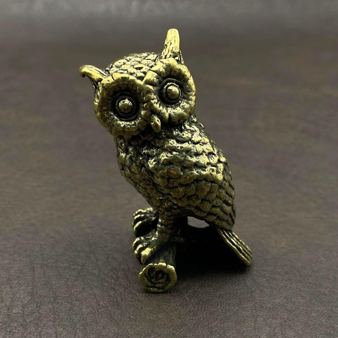 - 真鍮 置物 ビンテージ 風水 開運 金運 ヴィンテージ レトロ 真鍮製 置き物 オブジェ アンティーク ハンドメイド パーツ 動物 フクロウ 240
