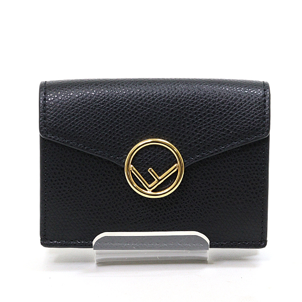 - フェンディ FENDI 三つ折り財布 8M0395 ブラック レザー ゴールド金具 コンパクト ウォレット 未使用品