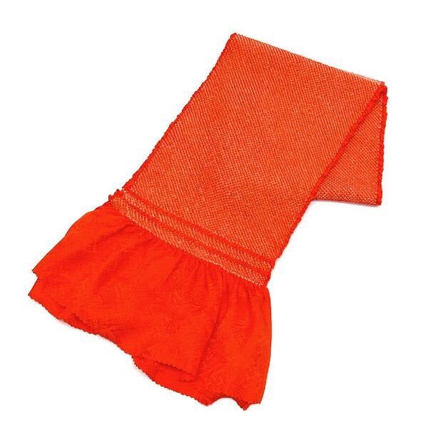 - 正絹総絞り帯揚げ 絹100% 朱色 オレンジ系 成人式 結婚式 振袖 手絞り シルク oa-118