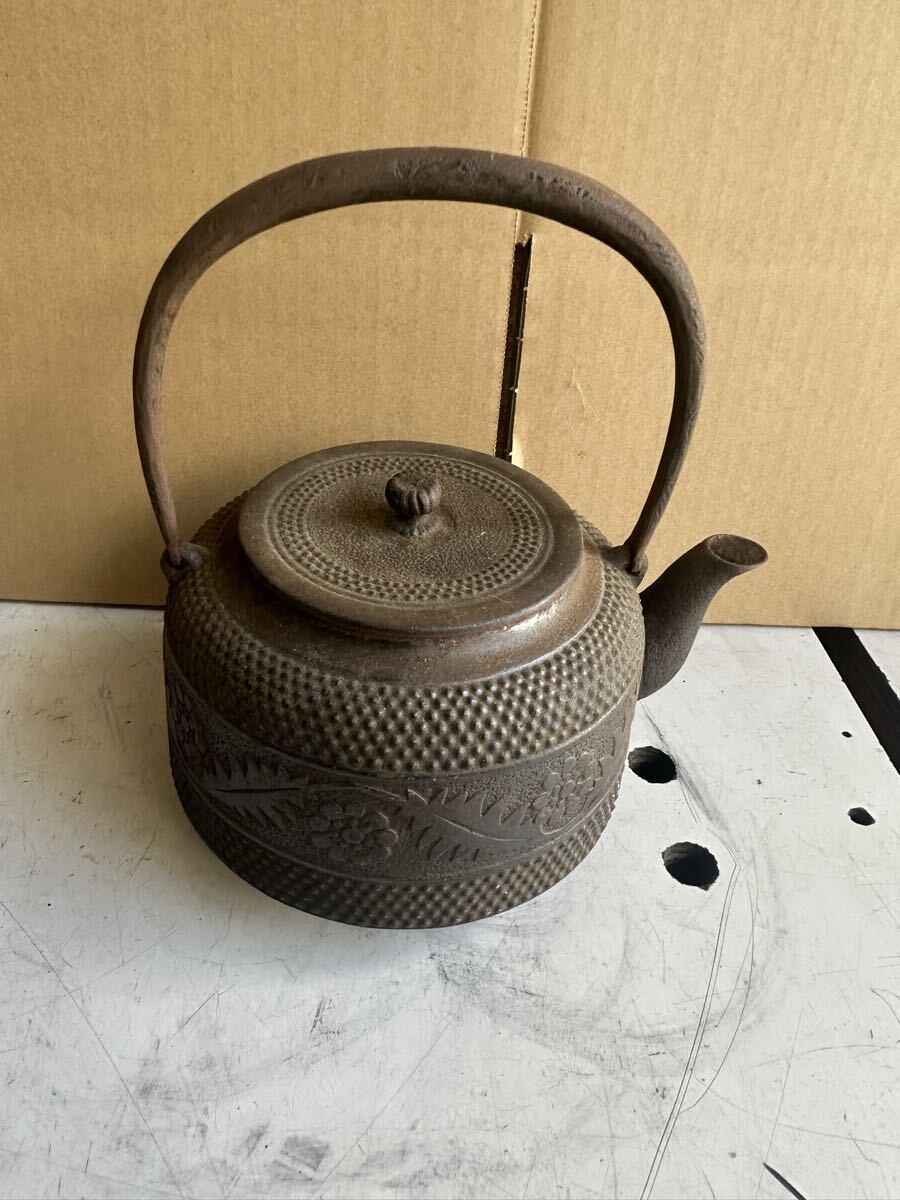 - (M) 南部鉄器 文福堂 鉄瓶 茶道具 あられ たんぽぽ柄? 現状中古品