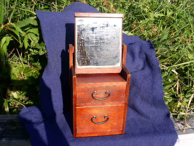 - ★レトロ★ 当時の物 折り畳み 鏡台 小物入れ 引き出し付き 古道具 古民具 古い(ビンテージ・アンティーク・インテリア)