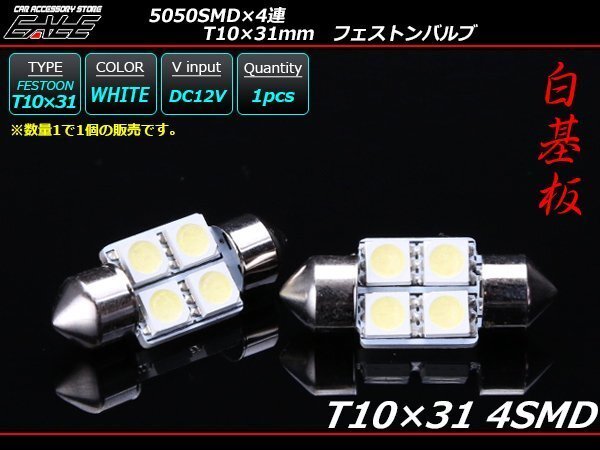 - T10×31mm/S8.5 3chip 5050SMD×4連 ホワイトLEDバルブ A-101