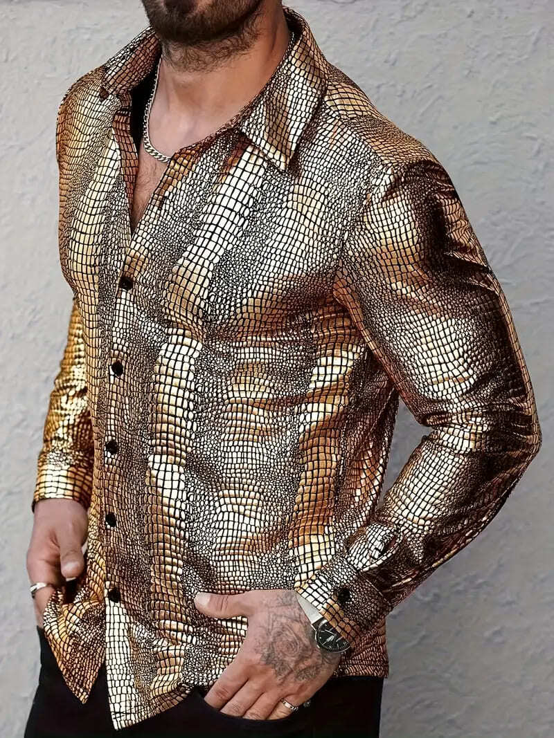 - クロコ柄長袖シャツ 337 金 ドレスシャツ Yシャツ 派手 柄シャツ スーツ ホスト ヤクザ ヤンキー オラオラ系 服 メンズ ファッション