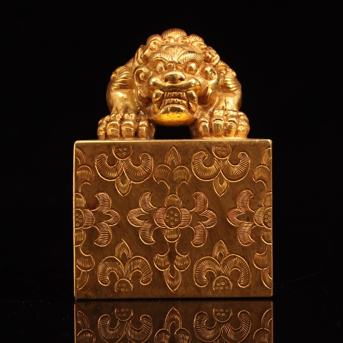 - 【超珍館蔵】銅製 塗金 瑞獣印章 印鑒 置物 文房賞物 古賞物 古董品 古美術品 時代物 旧家蔵出 稀少珍蔵品