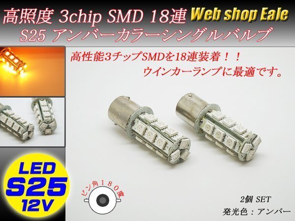 > S25シングル アンバー LEDバルブ 口金形状BA15S 3chip SMD×18連 2個セット C-3