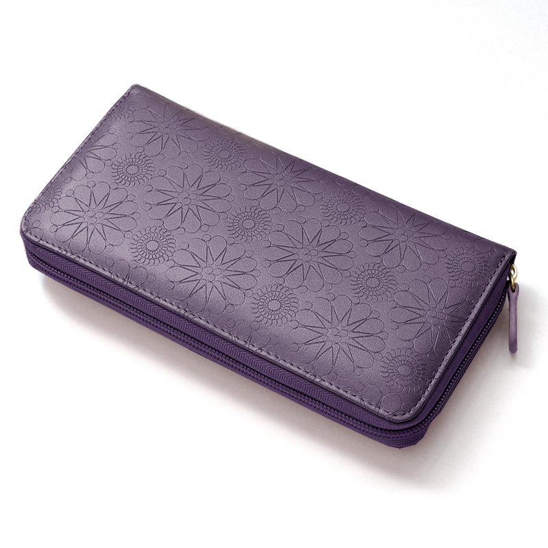 - 【MOMO】牛革型押しラウンドファスナー長財布 ■背面ポケット付きレディース長財布 パープル×1個