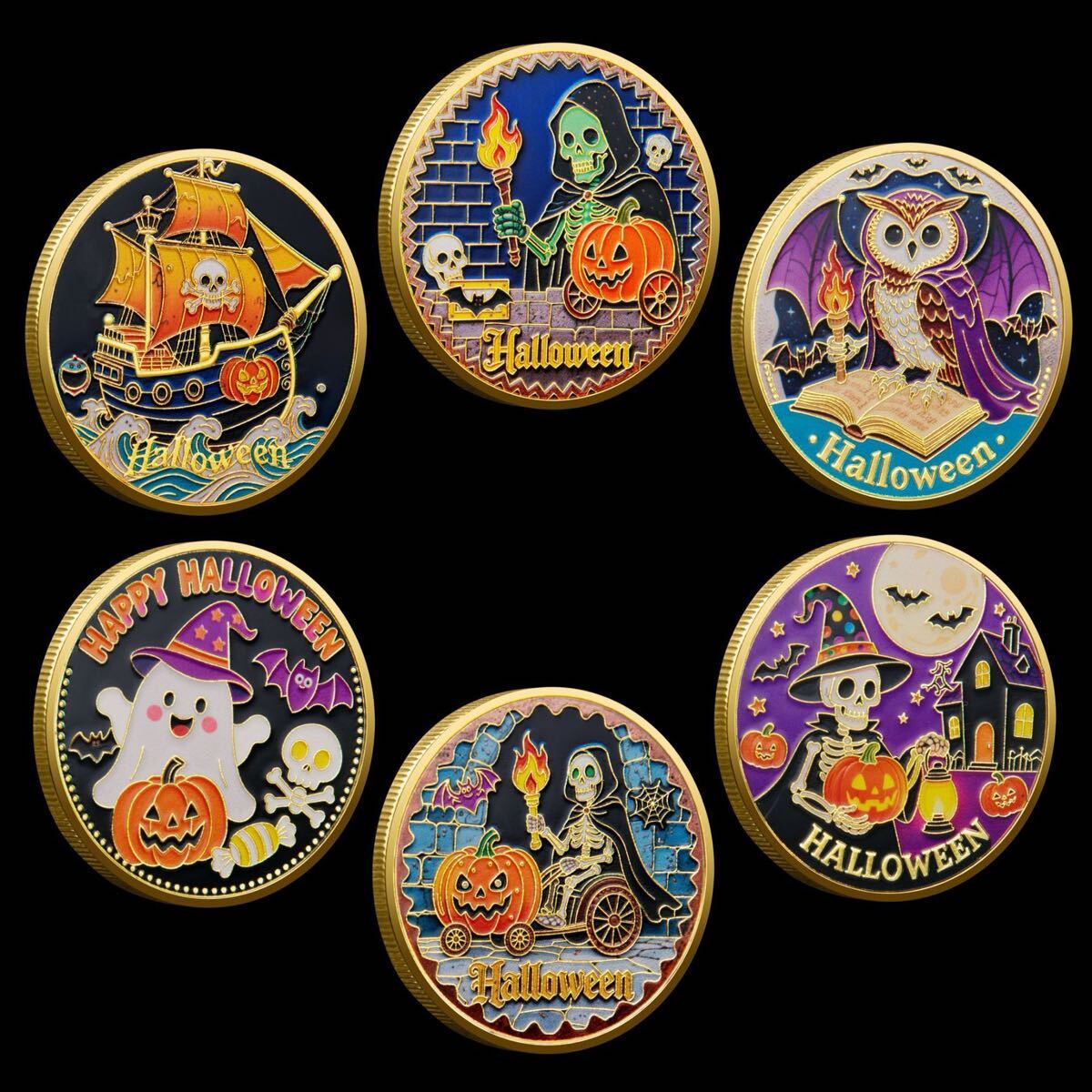 - 極美品 6枚セット ハロウィン 記念コイン 両面デザイン 彩色エナメル プレゼント用 限定メダル 外国金貨 コレクション 収蔵品 ケースあり