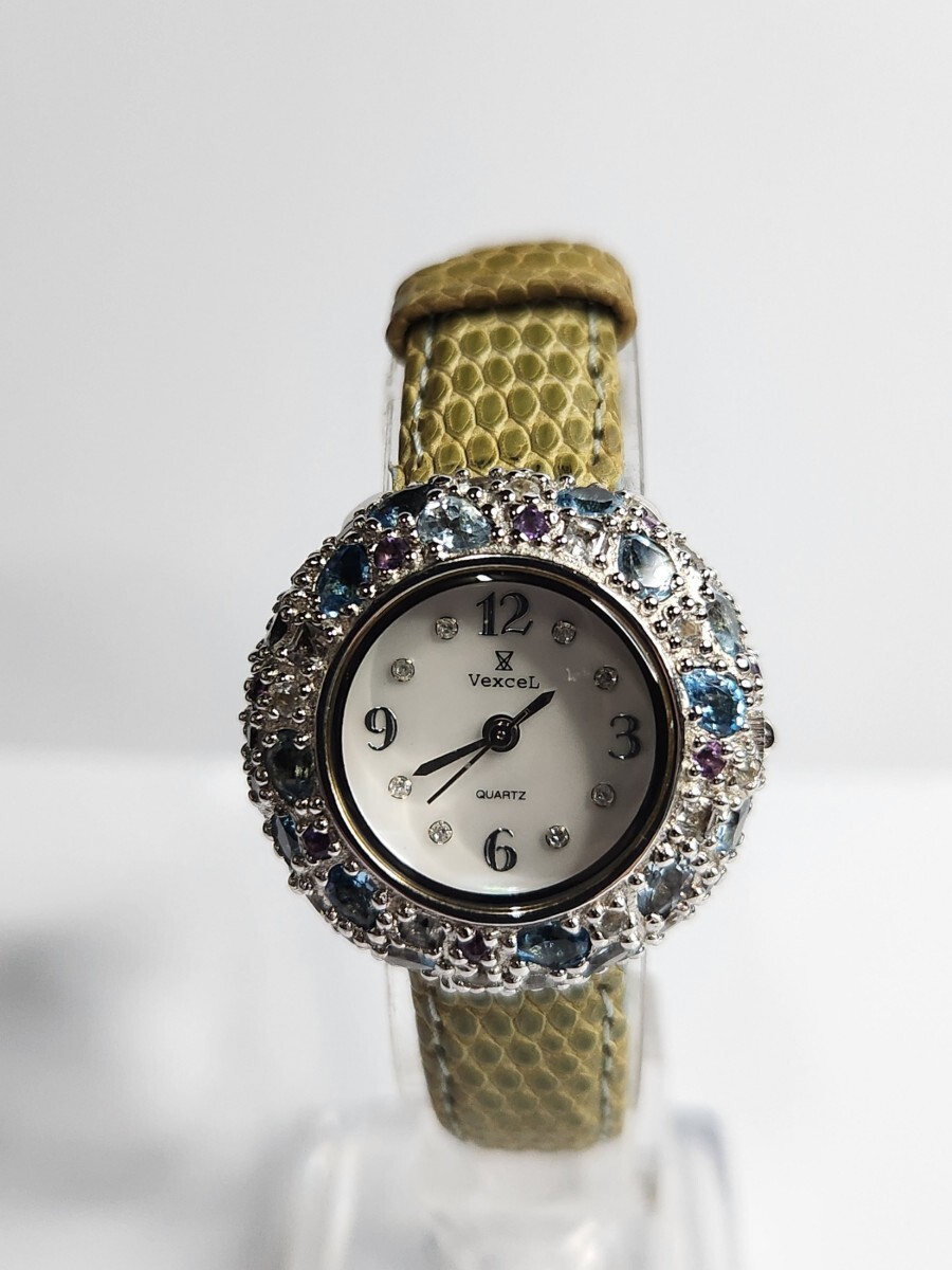 - 【希少】新品未使用 VEXCEL 銀製 silver925 ブルートパーズ 天然石 ジュエリー レディース腕時計 ウォッチ 3針 クォーツ 白蝶貝文字盤 高級