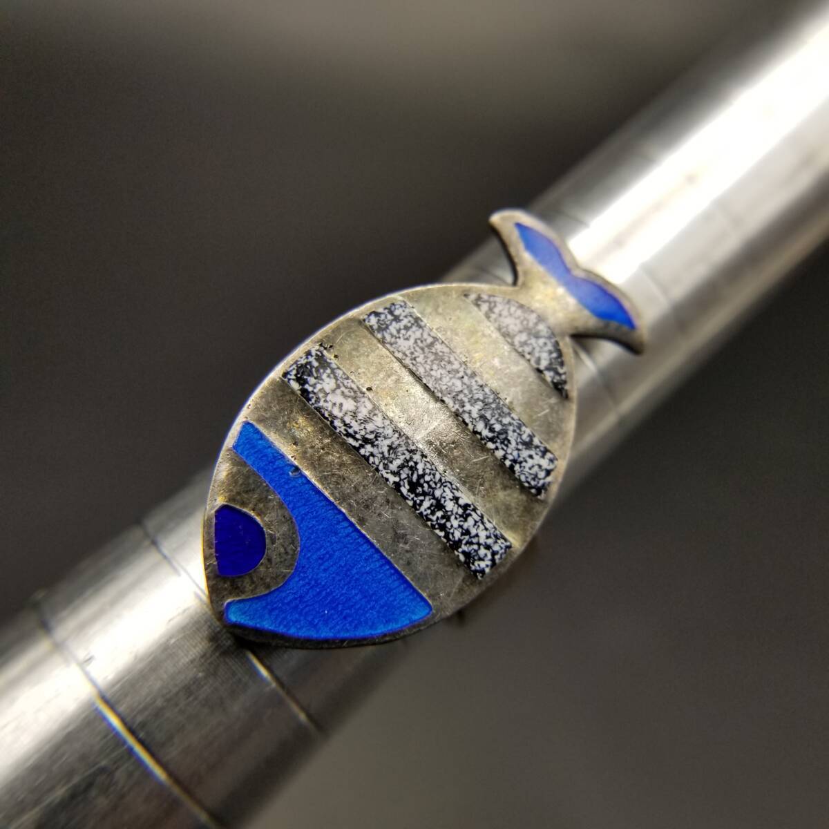 - UNOAERRE イタリア ヴィンテージ 縞模様の魚 925 シルバー フィッシュ リング 銀 指輪 キャラクター性 キュート Y24-F