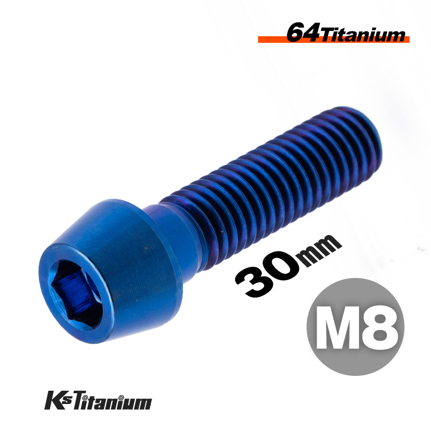 - チタンボルト M8×30 スレッド25mm P1.25 テーパーボルト ブルー 1本売り 64チタン M8 バイク レストア パーツ