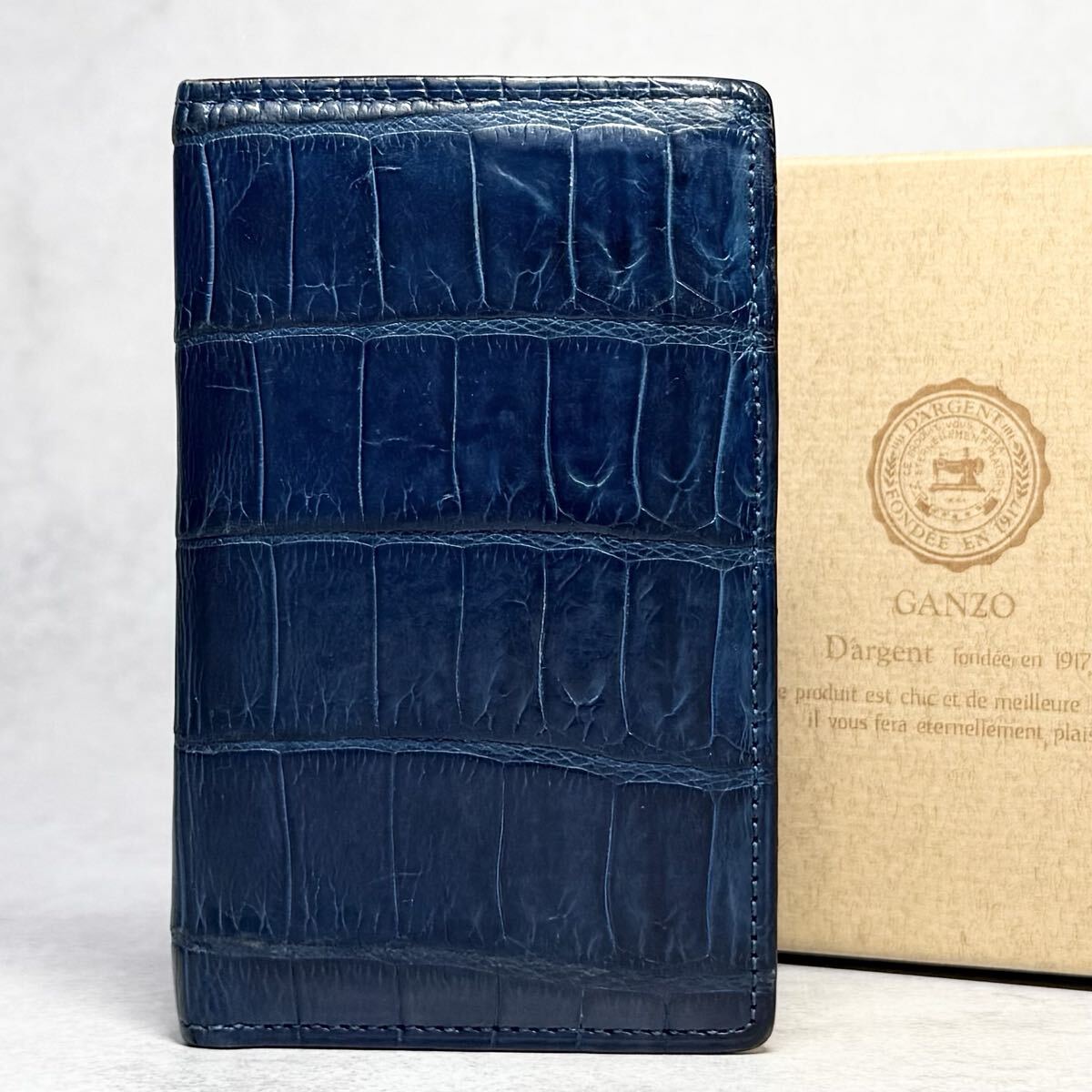 - 【超激レア/絶盤/入手困難】 ガンゾ クロコダイル カードケース ネイビー ホワイト 名刺入れ 財布 アリゲーター エキゾチックレザー GANZO