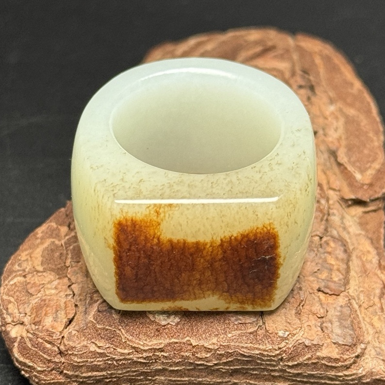 - 旧蔵 清 玉彫 和田玉 素面指輪を回す 玉質細膩温潤 極細工 中国古玩 骨董品 古美味 209