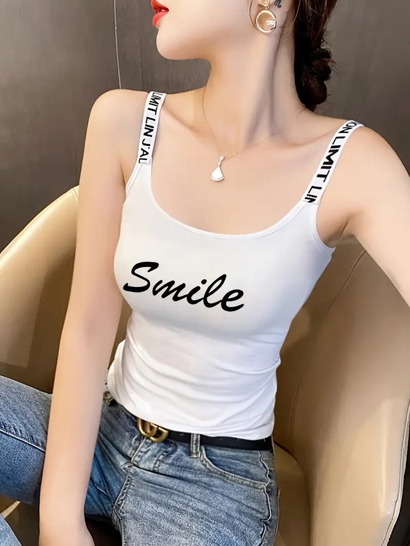 - y2kらしいプリントデザインシンプルクールボディラインの出るデザインレディースタンクトップ人気オススメ送料無料お得お洒落モテデザイン