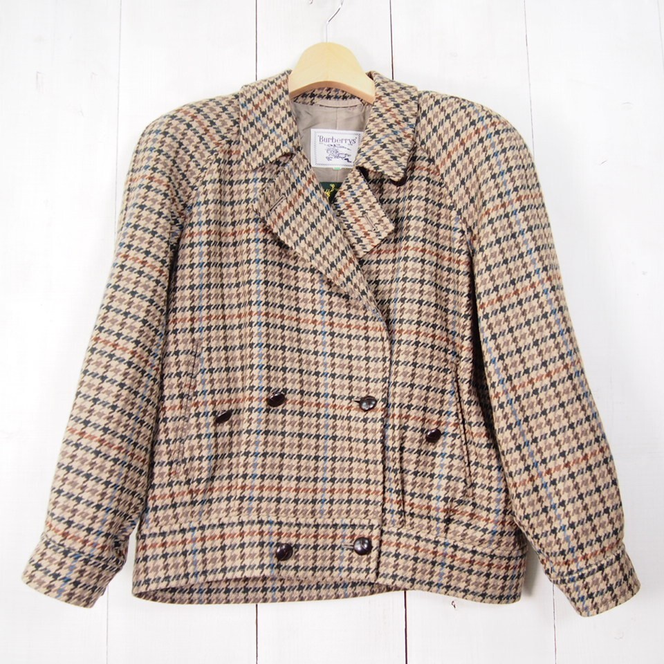 - 90s バーバリー Burberrys 千鳥格子柄ダブルウールジャケット 包み釦(9AR)ブラウン