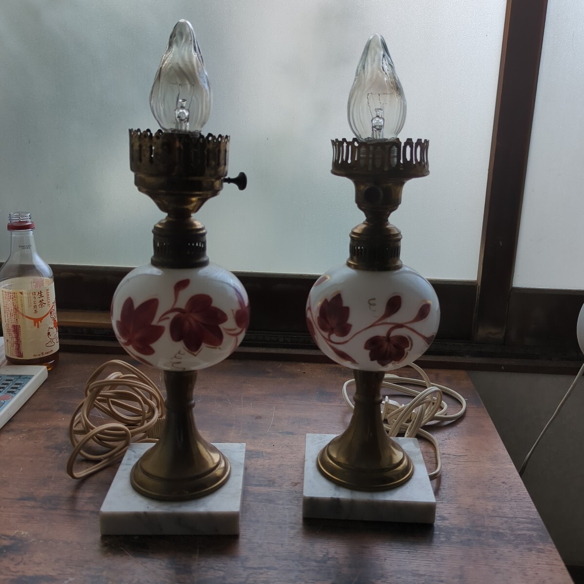 - ヴィンテージ ミルクグラス 真鍮製 卓上ランプ