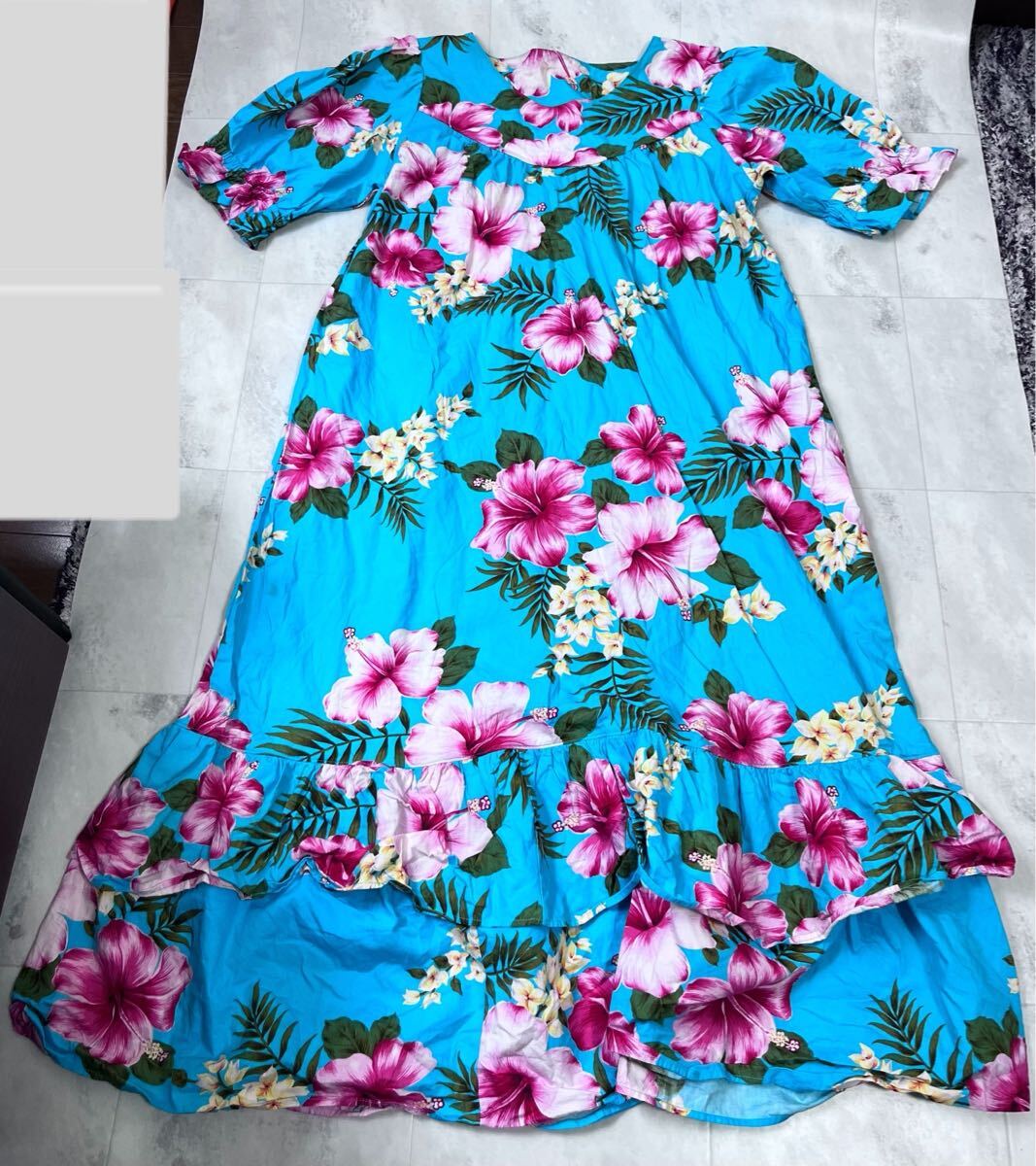 - フラダンス ワンピースドレス フラドレス ハワイアン ハイビスカス アロハ ムームー 発表会 HAWAII 日本製