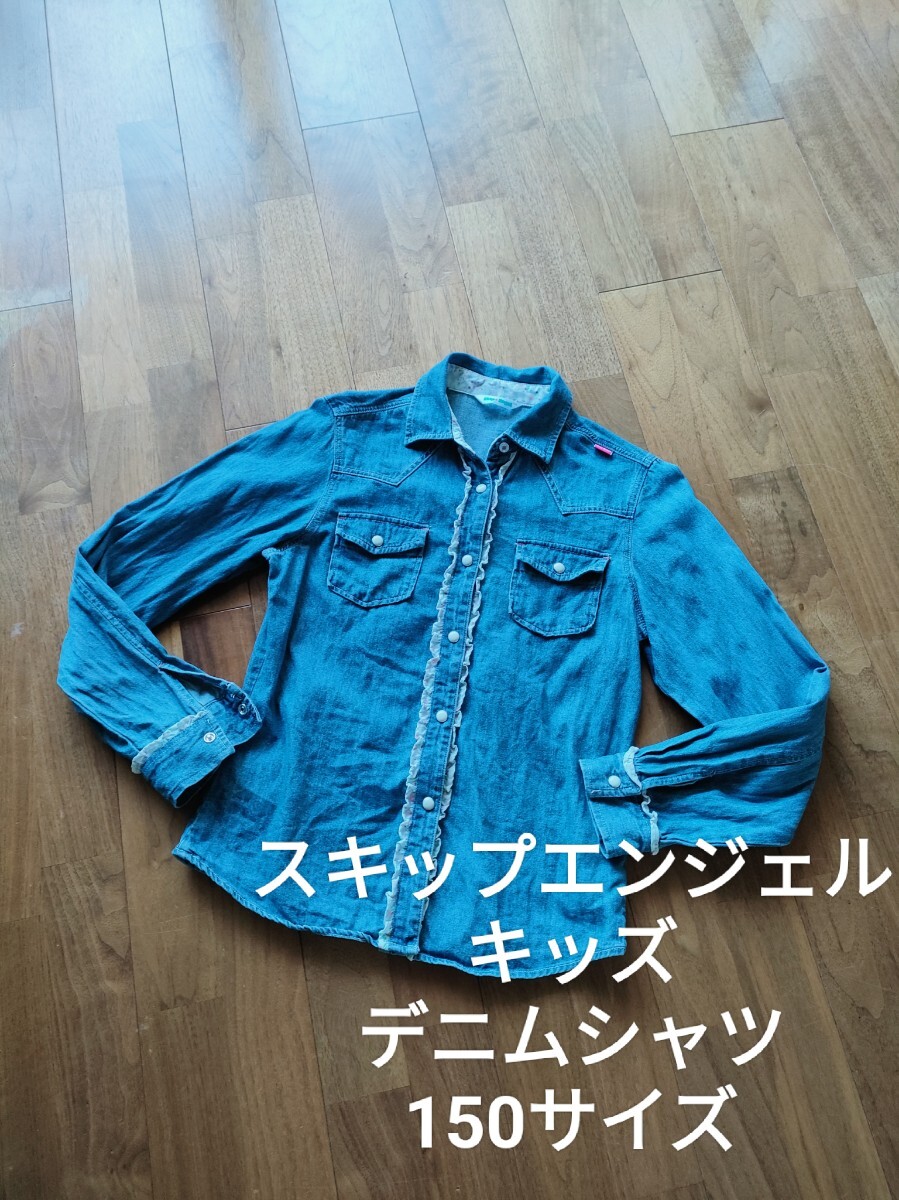 - スキップエンジェル キッズ 花柄フリル コットン ウエスタンデニムシャツ 150