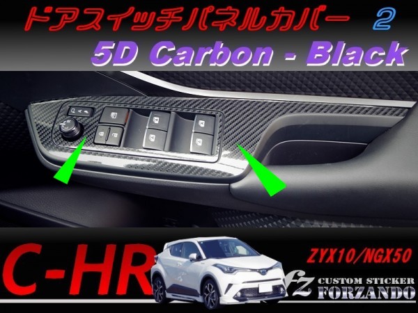 > C-HR CHR ドアスイッチパネルカバー2 5Dカーボン調 ブラック 車種別カット済みステッカー専門店 fz ZYX10 NGX50