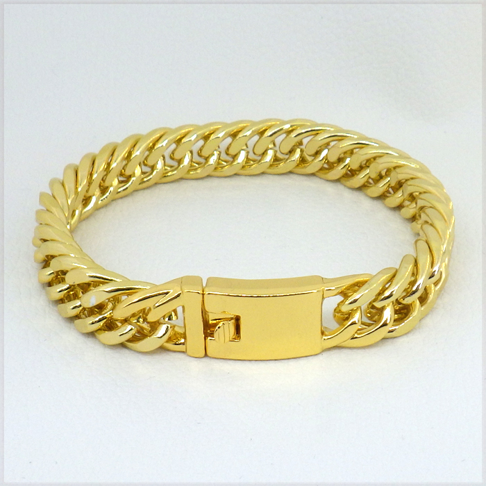 > [BRACELET] 18K Gold Plated ラグジュアリー スクエアバックル ゴールドカラー 4面 ダブル喜平チェーン ブレスレット 10x200mm (16.5g)