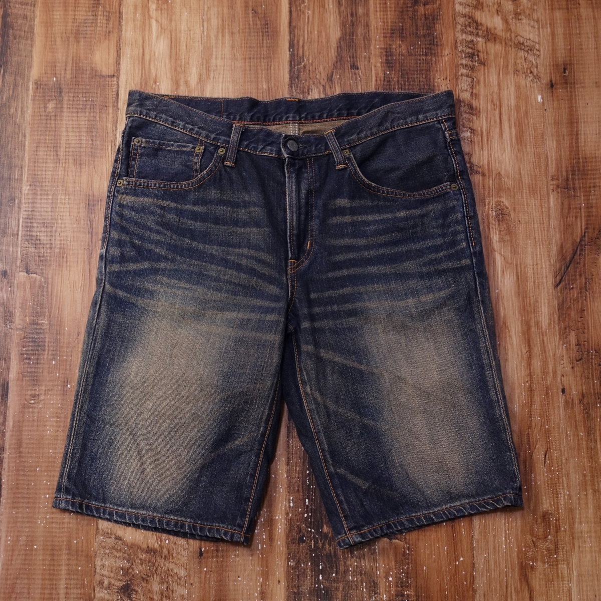 - 美品 エドウイン EDWIN デニムハーフパンツ メンズ ヴィンテージ加工 夏物 カジュアル 34インチ インディゴブルー QG17