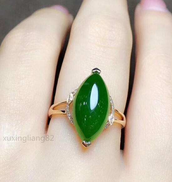 - 早い者勝ち オリーブ形 指輪 レディース 天然和田玉 大粒 緑玉髓 ヒスイ 24KGPリング アクセサリー 誕生日 フリーサイズ
