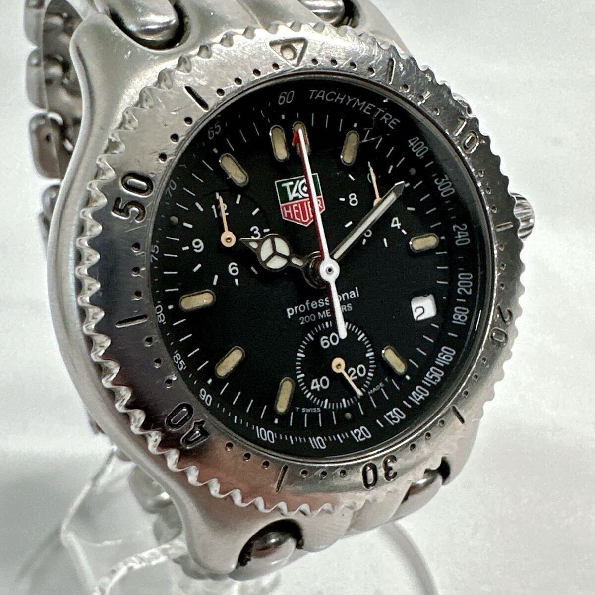 > 動作確認済 稼働 TAG HEUER タグホイヤー 腕時計 セル プロフェッショナル クロノグラフ CG1110 メンズ ブラック文字盤【1030】
