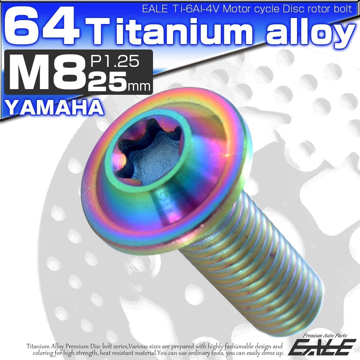 > 64チタン製 ヤマハ用 M8×25mm P1.25 ブレーキ ディスク ローター ボルト レインボー 虹色 チタンボルト Ti6Al-4V JA071