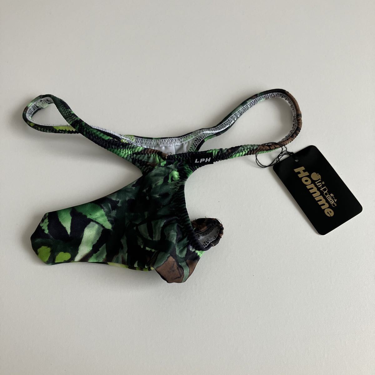 > ラポームオム メンズ La-pomme homme 快適フィット メンズ Tバックショーツ セクシー 3D立体ポーチ 熱帯プリント グリーン M