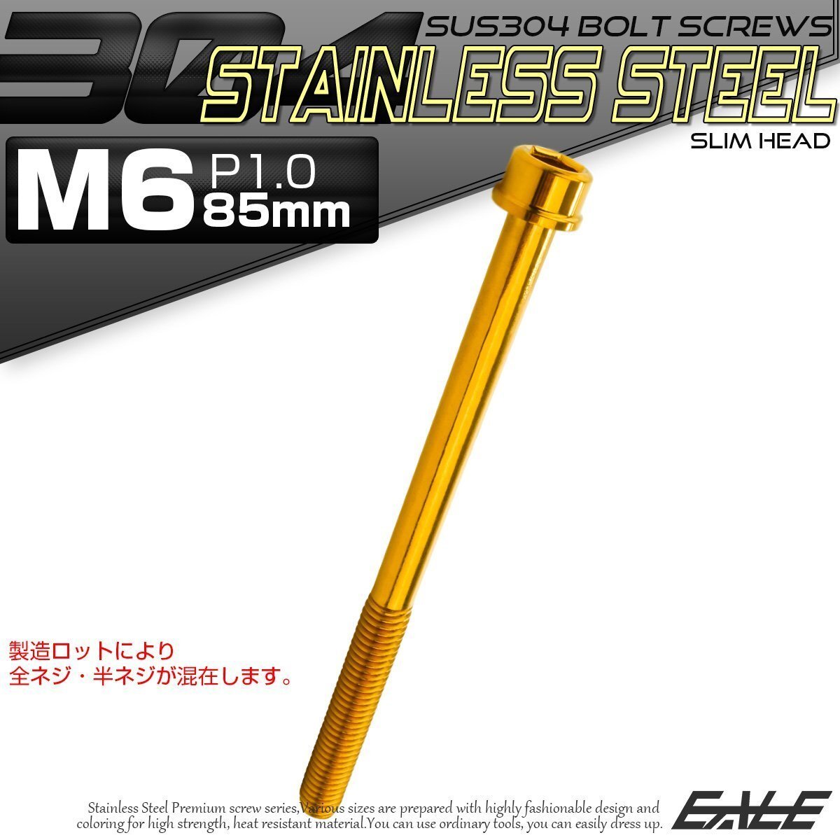 - キャップボルト M6×85mm P1.0 六角穴付きボルト スリムヘッド ゴールド カスタムボルト ステンレス製 TB1044