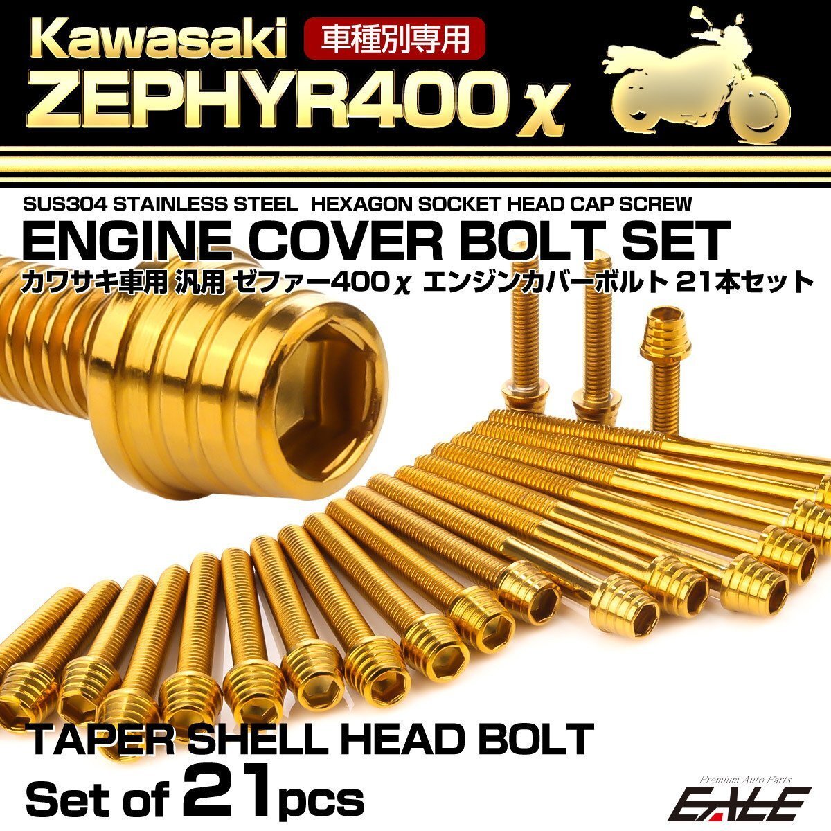 - ゼファー400カイ エンジンカバーボルト 21本セット ZEPHYR400χ テーパーシェルヘッド ゴールド TB8133