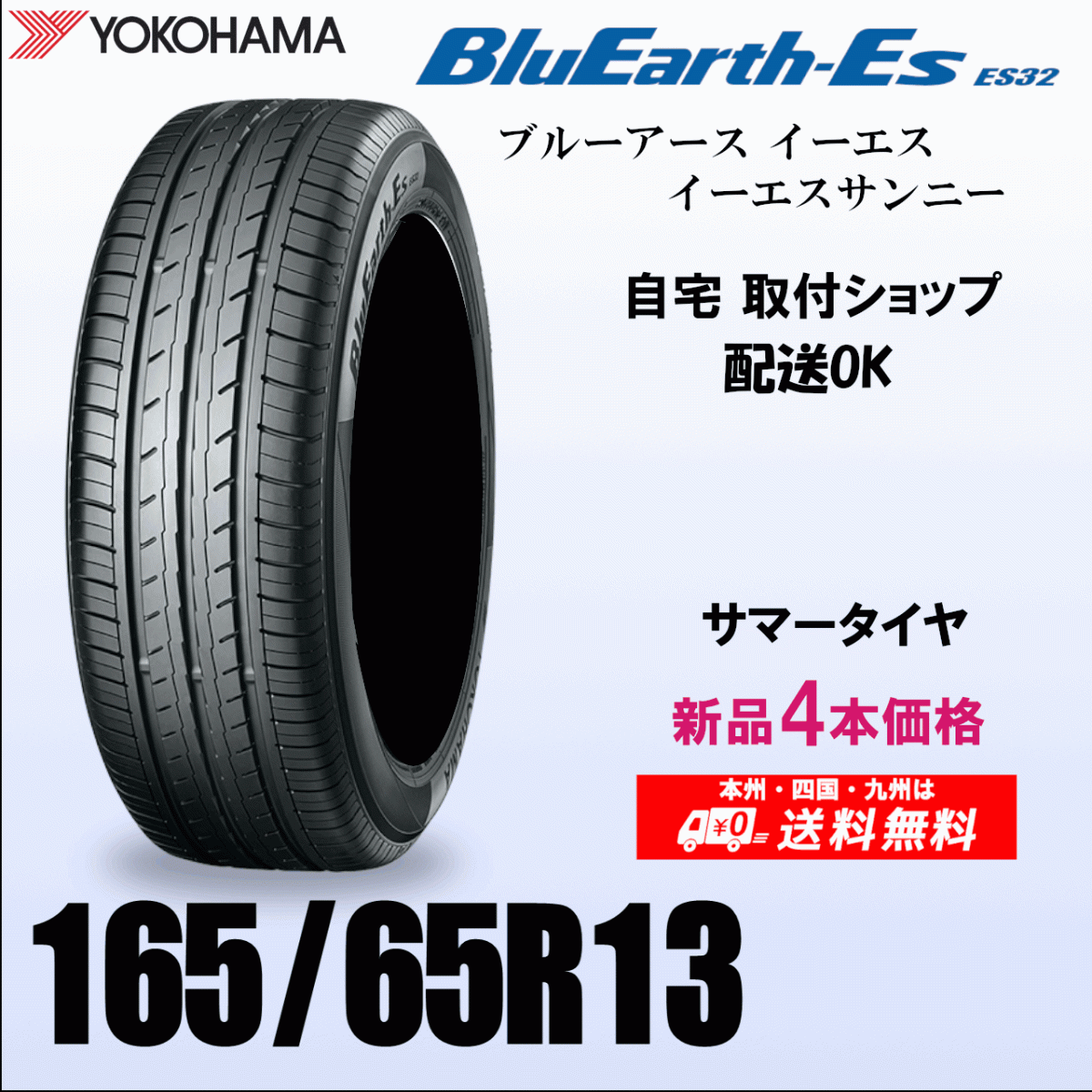 > 165/65R13 77S 送料無料 新品タイヤ 25年製 4本価格 ヨコハマ ブルーアースES32 正規品 在庫有 BluEarth 自宅 取付店 発送OK
