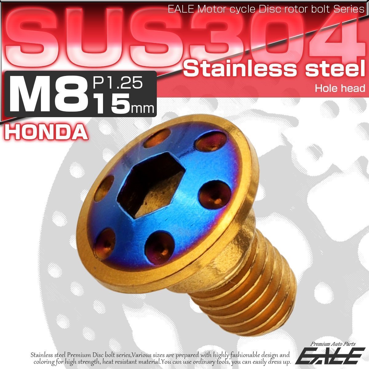 > ホンダ用 M8×15mm P=1.25 ブレーキ ディスク ローター ボルト SUS304 ステンレス ホールヘッド ゴールド/ブルー TD0331