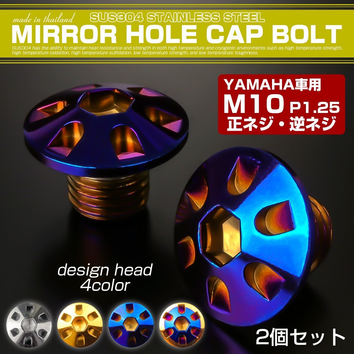 > ミラーホールカバーボルト キャップ M10×10mm P1.25 正ネジ 逆ネジ 2個セット ヤマハ車用 デザインヘッド SUS304 焼きチタン TH0188