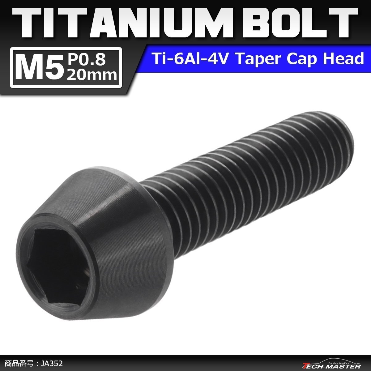 > M5×20mm P0.8 64チタン合金 テーパーヘッド 六角穴付き キャップボルト ブラック 黒色 ドレスアップ パーツ 1個 JA352