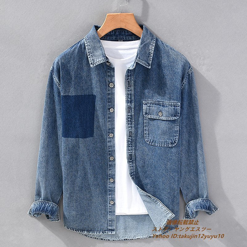 - 新品 デニムシャツ メンズ 長袖シャツ デニムジャケット 秋冬 カジュアルシャツ ブルゾン 胸ポケット 上質 コットンシャツ ブルー 2XL