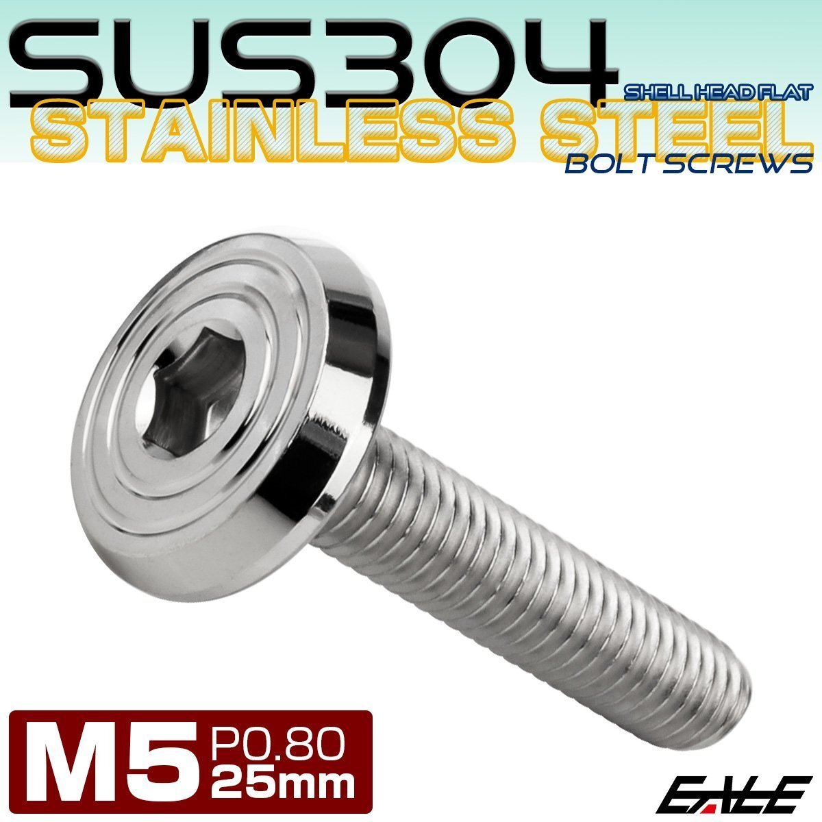 > ステンレスボルト M5×25mm P0.8 シェルヘッド フラット 六角穴付 ボタンボルト SUS304 シルバー TR0765