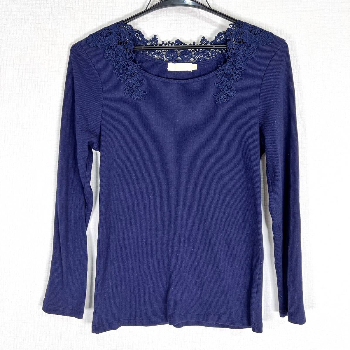 - 【earth music&ecology】アースミュージックアンドエコロジー ネイビー リブニット 長袖 カットソー トップス レディース Lサイズ【a020】
