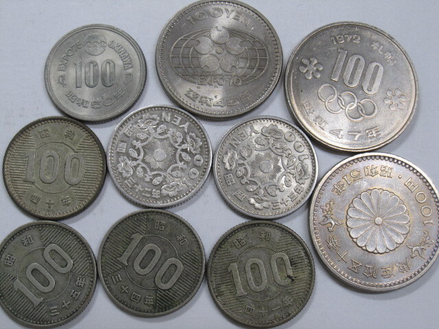 - 鳳凰 稲穂 札幌 沖縄 EXPO 古銭 100円 10枚■昭和 32年 33年 34年 35年 40年 41年 45年 47年 50年 51年■ 中古美品 昭和レトロ 記念硬貨