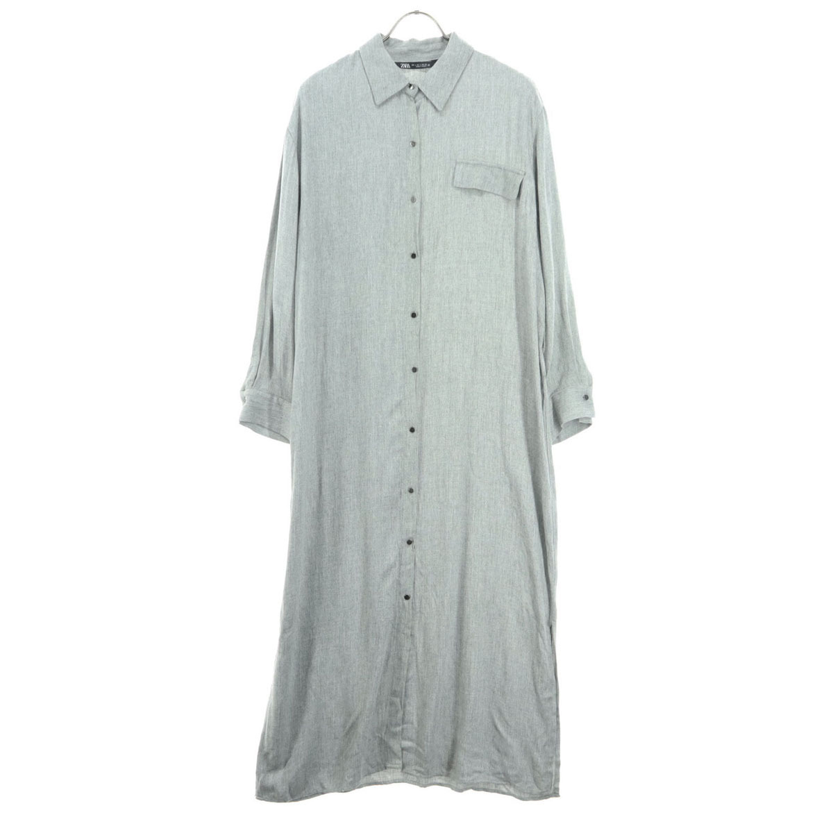 ZARA ザラ 長袖 シャツワンピース L グレー ロング丈 レディース