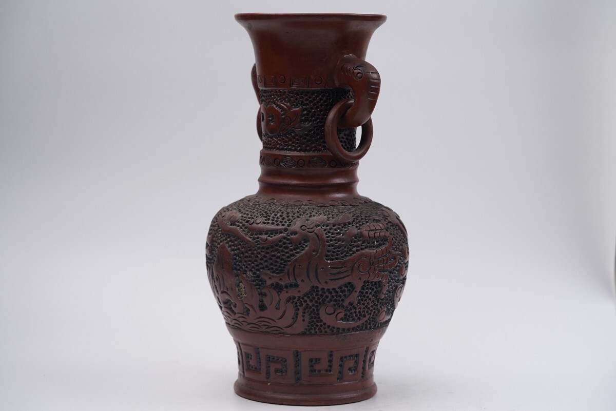 - 【萬藏】中国 清代 中国美術 朱泥 紫砂 花瓶 花入 骨董品 置物 花入れ 時代物 古美術 花器 高さ 28cm