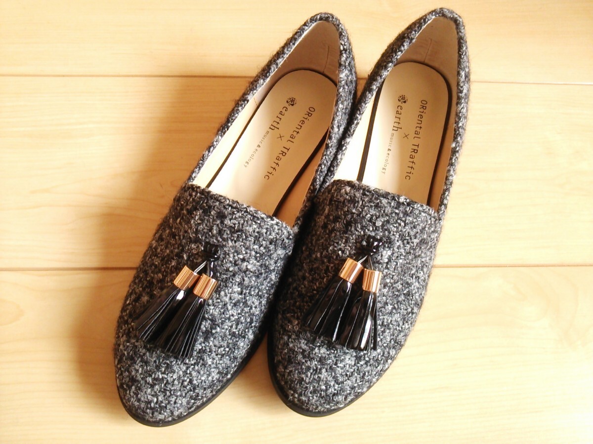 > 新品ORientaL TRaffic×earth music&ecology*ボアタッセルフラットシューズ*未使用グレー*オリエンタル*送料無料レディース