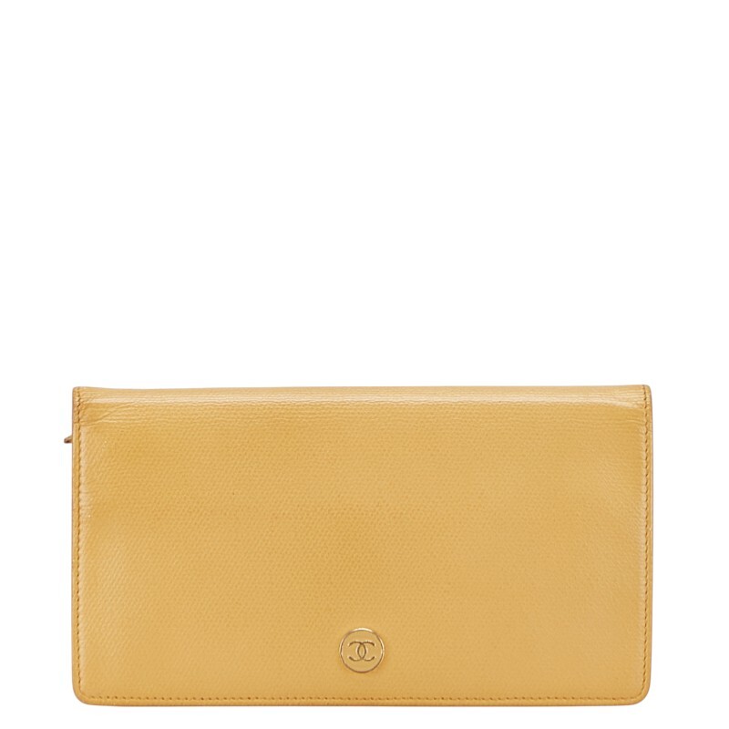 - シャネル ココボタン 長財布 イエロー レザー レディース CHANEL 【中古】