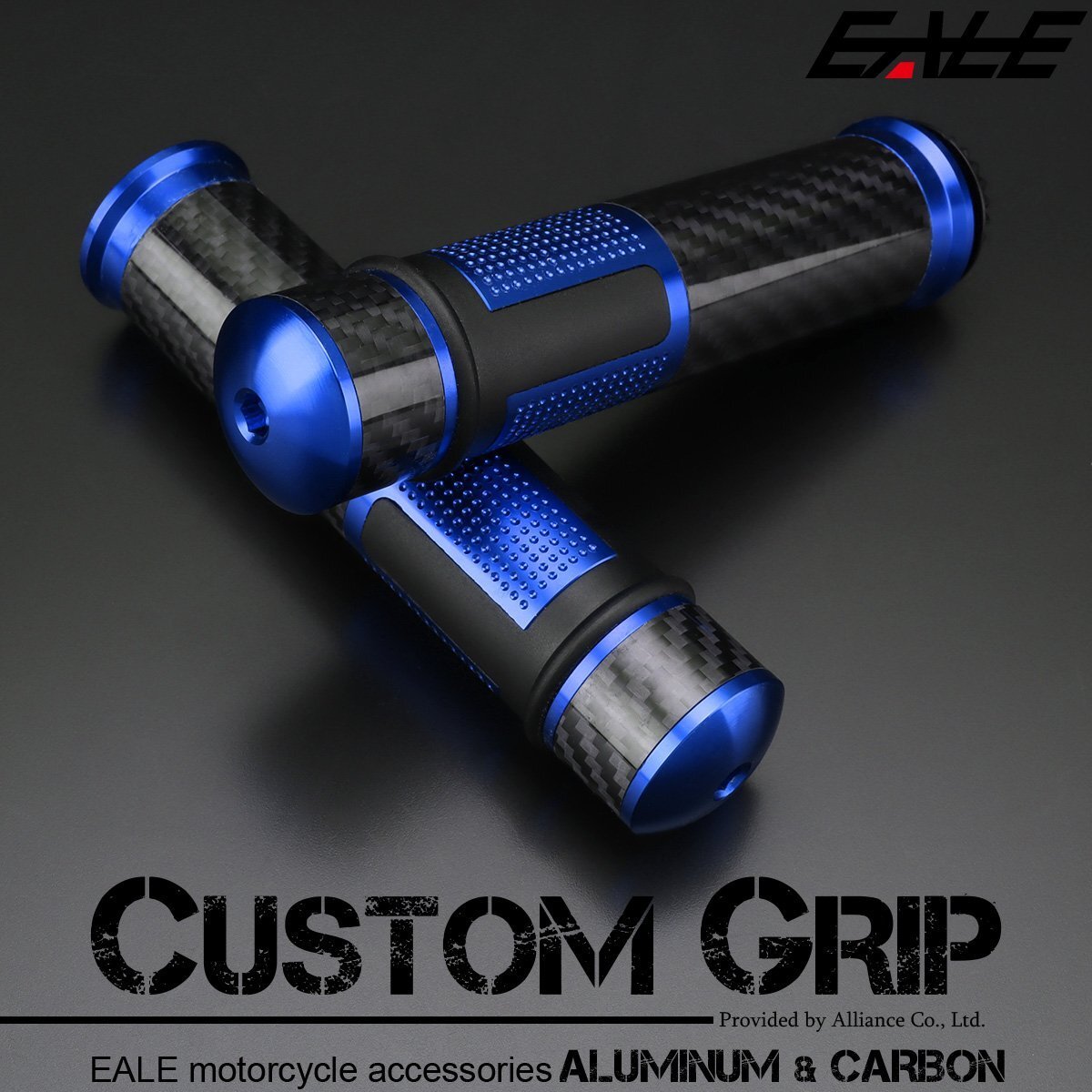 > バイク グリップ カーボン アルミ バーエンド付き ハンドル 22.2mm用 ブルー 左右セット カスタム ドレスアップ S-249-B