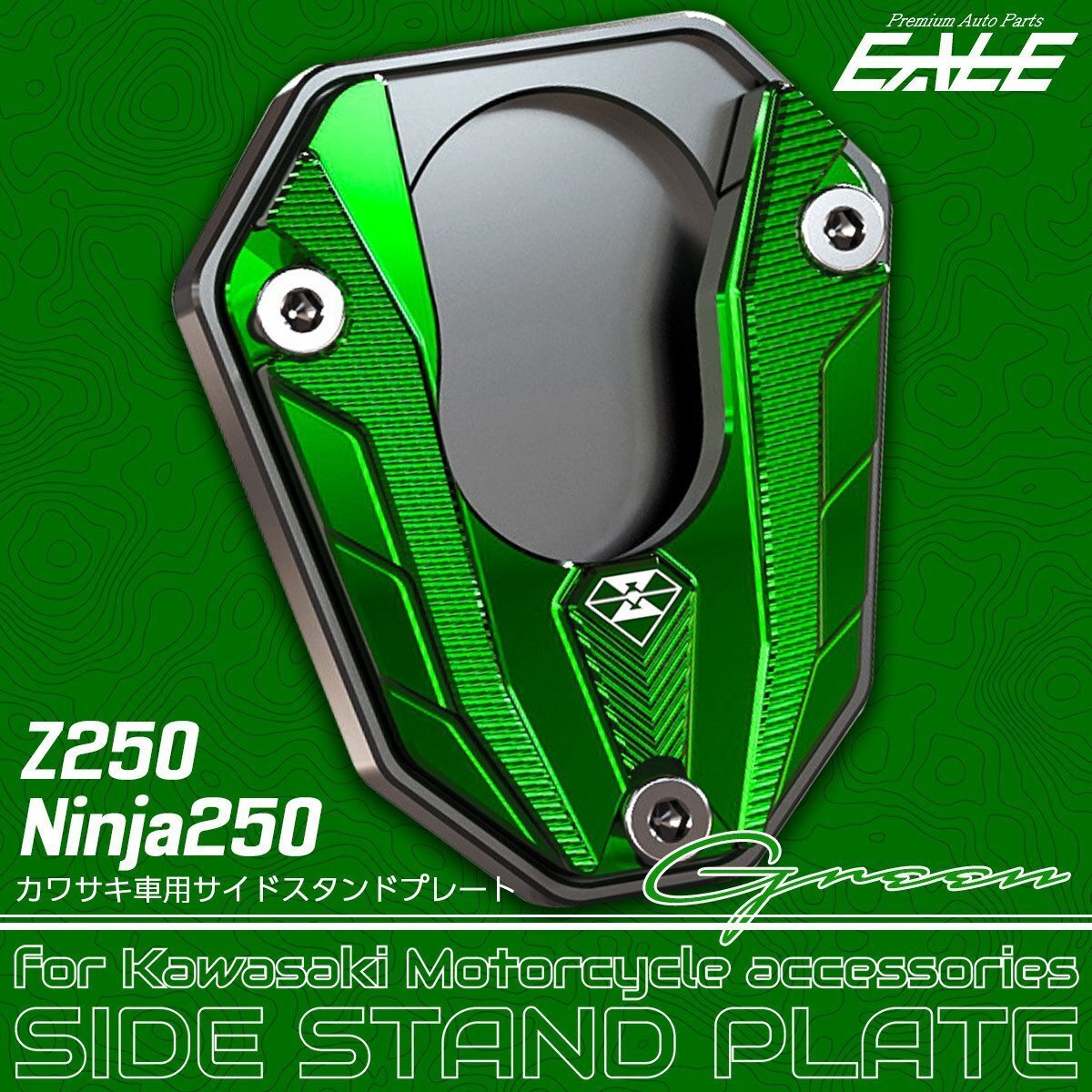 - サイドスタンドプレート カワサキ車用 Z250 2013-2017 Ninja250 ニンジャ250 2013-2016 グリーン S-935-GR