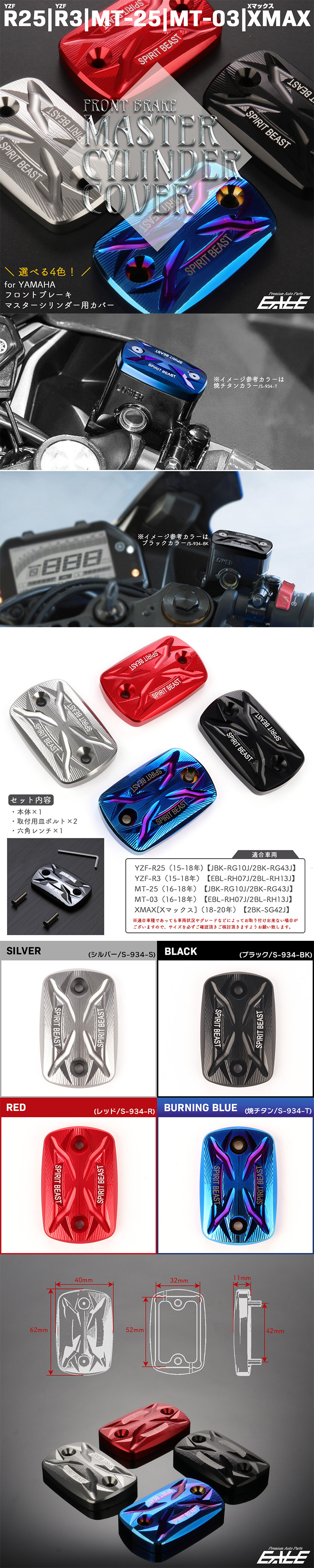 > フロントブレーキ マスターシリンダー カバー キャップ ヤマハ車用 YZF-R25/YZF-R3 MT-25/MT-03 XMAX250 2015-2018 レッド S-934-R