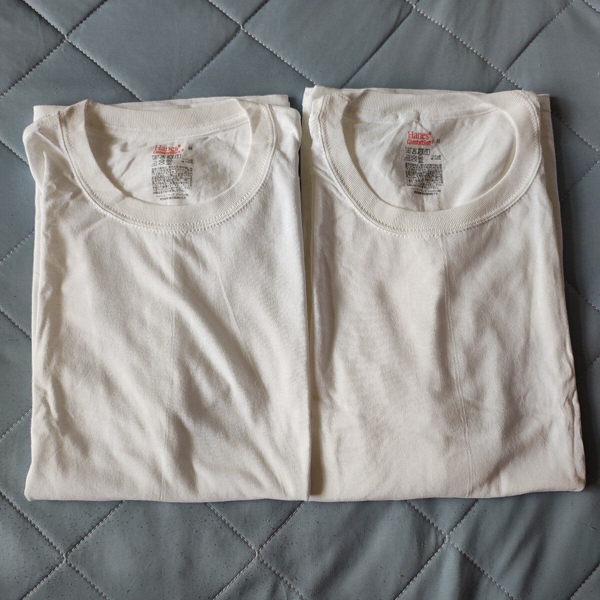 > 【ヘインズ】新品未使用 無地 Tシャツ 2枚組 男女兼用 白 ホワイト Mサイズ Hanes タグレス
